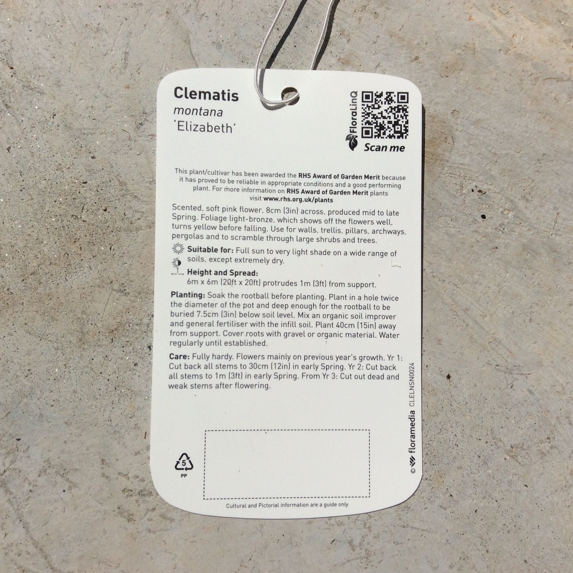 Clematis montana 'Elizabeth' is a vigorous climber that has been awarded the RHS Award of Garden Merit for reliable performance and a wonderful display of scent flowers.